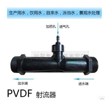 材質為PVDF(氟塑料),抗臭氧、酸堿腐蝕,對水質、溫度變化的兼容范圍廣,適應不同工況的運行要求。用戶在吸氣口增加可調閥門,可調整吸入氣量, 它能對污水進行高效曝氣,既提高了污水處理中所需的溶解氧,又除去了部分的BOD,在有污泥回流時,降低后級處理設施的負荷;用于生物接觸氧化池中時,取代了傳統的生化曝氣方法,無需復雜的鼓風機管路系統和曝氣頭等曝氣設備;應用于水產養殖中,可有效提高單位功率氧的轉化效率。